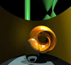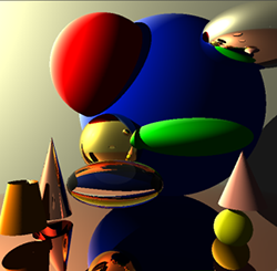 Students receive this assignment after practical sessions where they have already implemented ray tracing spheres with shadows and reflections. They have to implement ray intersection for somewhat more complex geometry, and make creative use of tweaking the ray tracing process for various effects - Incremental image synthesis